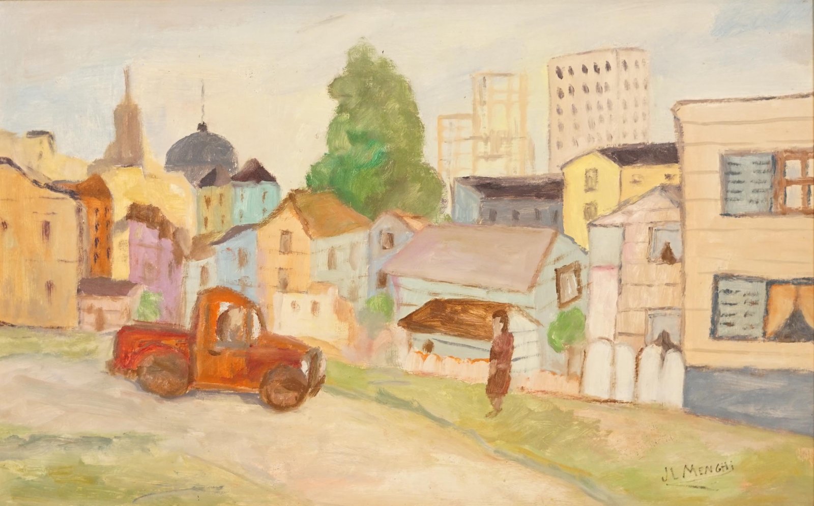 64 – MENGHI JOSÉ LUIS – PAISAJE URBANO CON FIGURA
